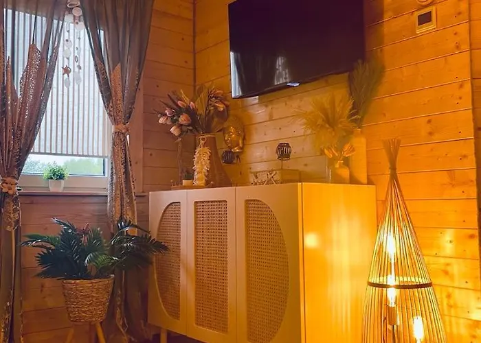 Le Parc des dinosaures de Leba est à quelques pas du domicile de 26 m², tandis que l'arrêt de bus Nowecin est dans un rayon de 300 mètres. Les Ruines de l'église Saint-Nicolas sont situés à environ 3 km de cet appartement "Domki Na Zielonej Lace" -Styl Boho.